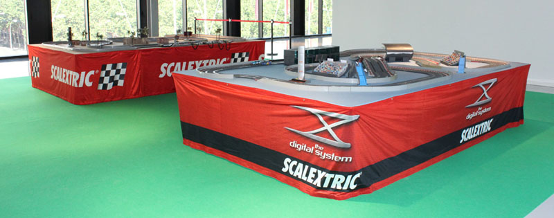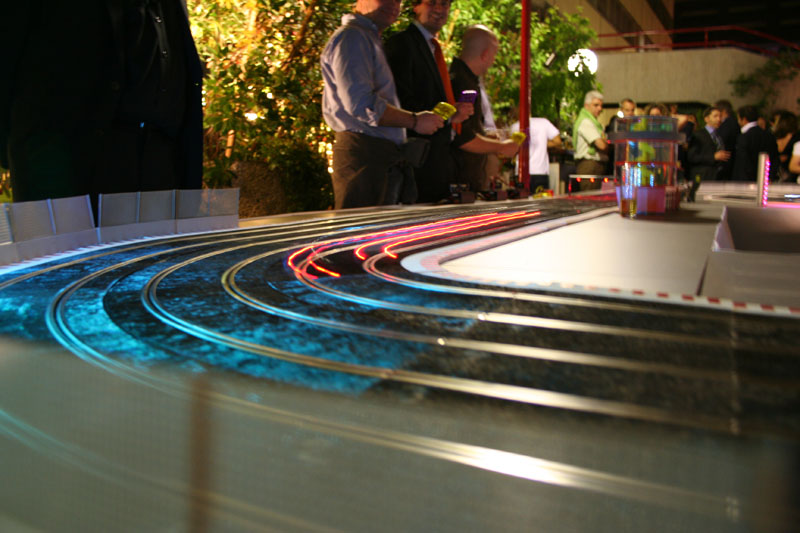 Montaje ideal para cualquier ocasión, desde una fiesta de empresa hasta un evento publicitario, será divertido ver al departamento de contabilidad peleando por la victoria frente a marketing; con una pista de scalextric captará mucha atención en una feria, niños y adultos.